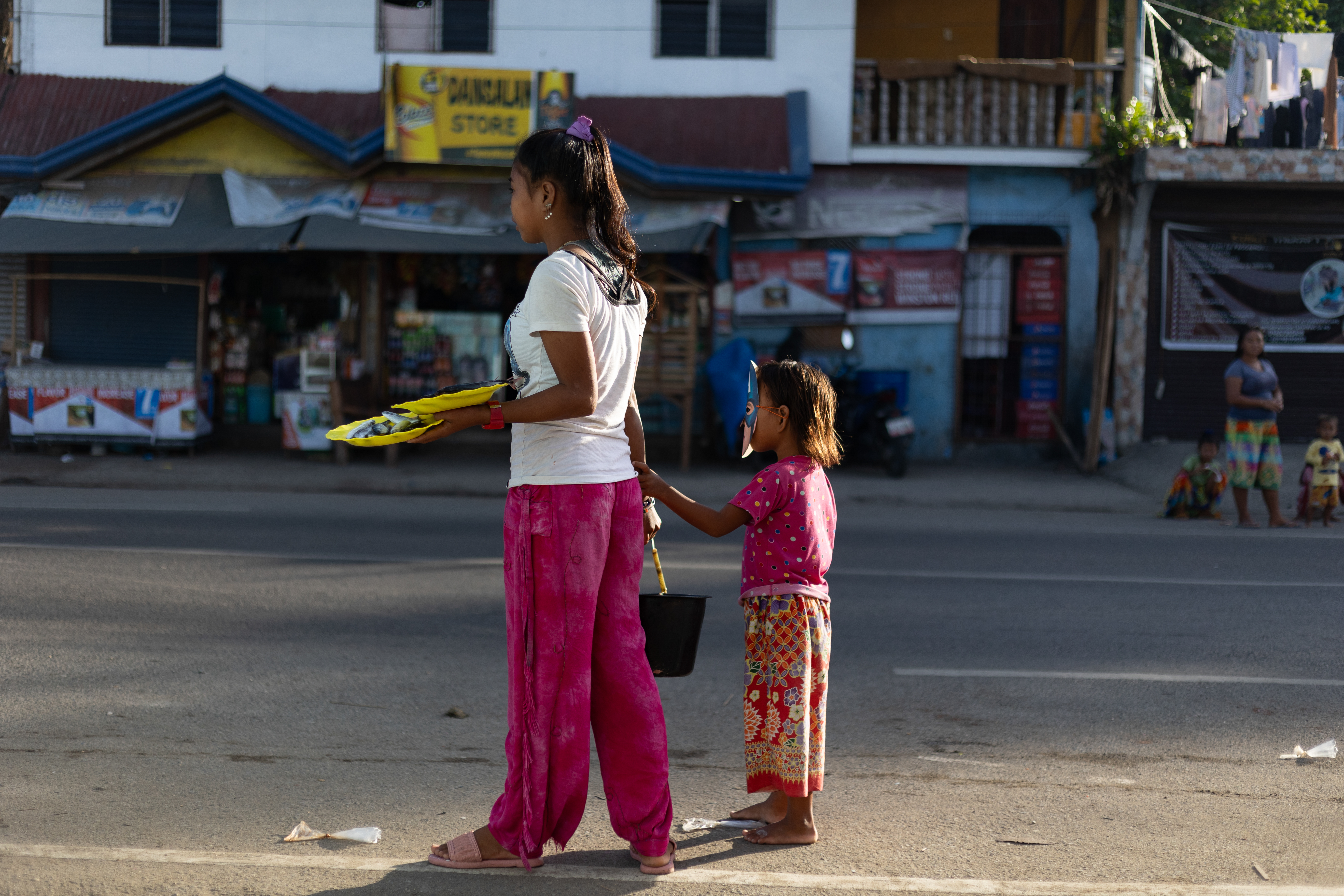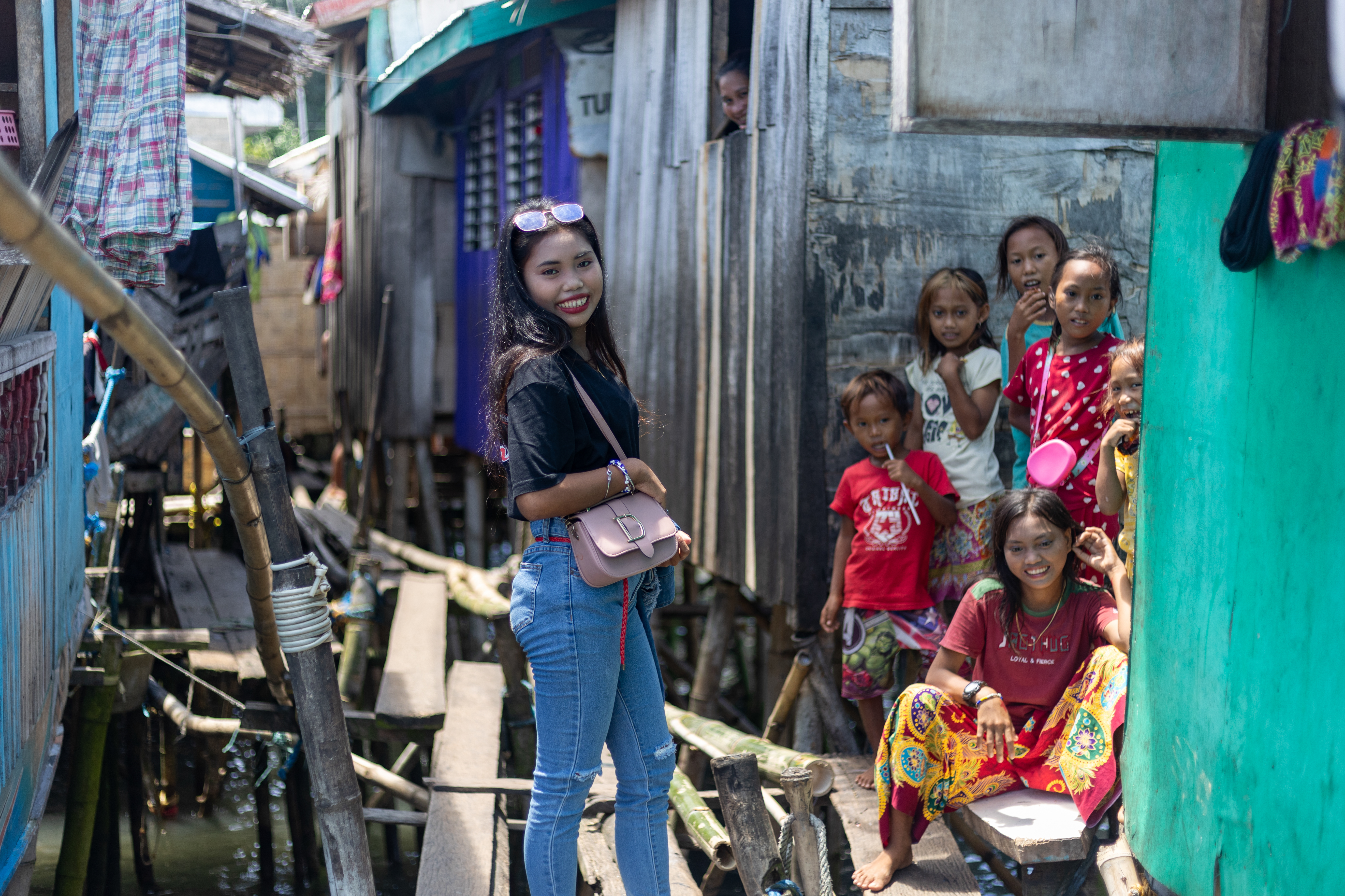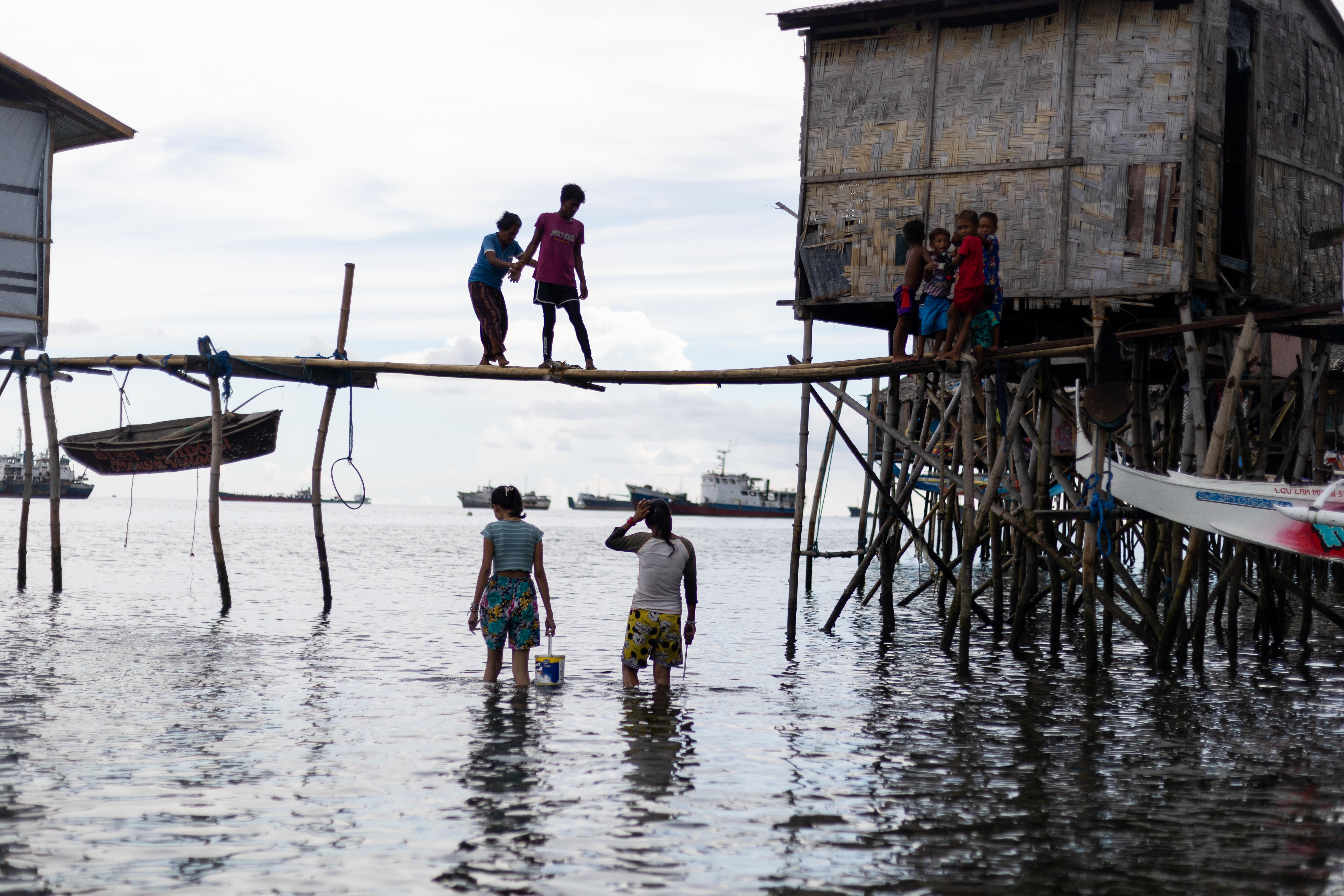 Offline, Bajau girls from Caragasan, Zamboanga City dress up not just for special occasions like parties or weddings, but even on ordinary times when they need to travel to the town center of Zamboanga City. As though going to a fashion show, Ana garbs herself with newly pressed clothes while walking on wooden stilts in her community.