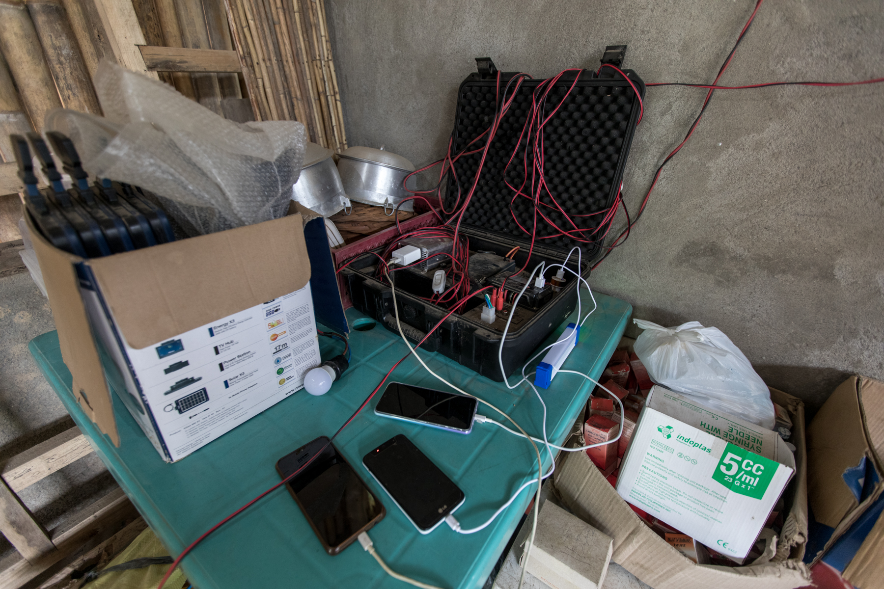 The TekPak solar power system powers light bulbs and mobile phones for emergencies at the community health center in Sitio Magata, Barangay Laiban, Tanay, Rizal.